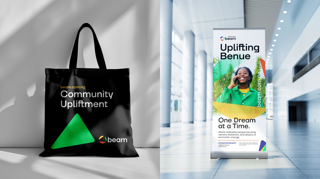 We began by reviewing BEAM’s organisational purpose: “to see every community in Benue thrive—economically, socially, and spiritually—through ownership, innovation, and unity.” beam.com.ng From this foundation, the design system evolved around themes of growth (plant/seed/graph metaphors), connection (network of people/communities) and authenticity (grounded in local culture but with a forward-looking outlook).